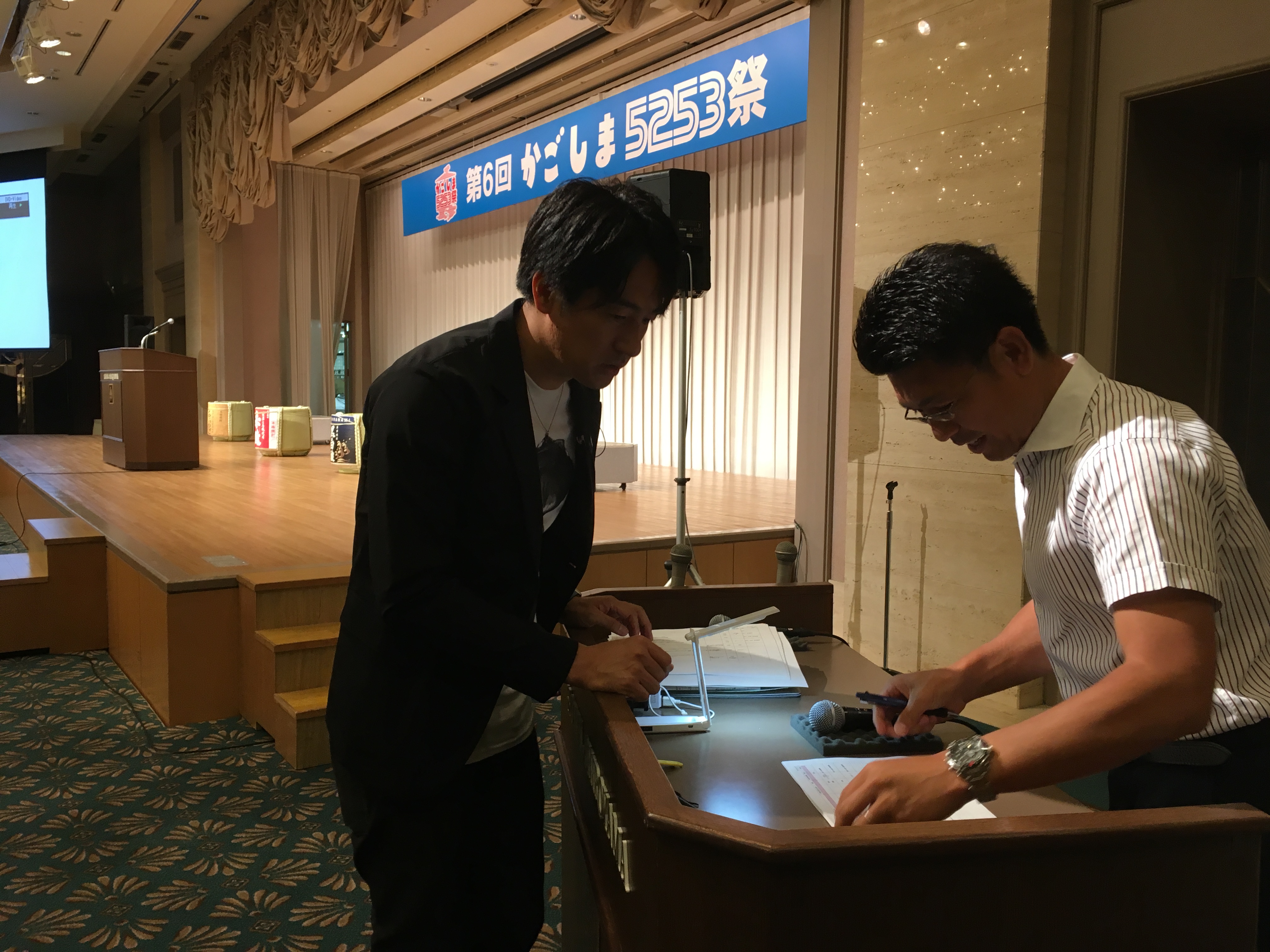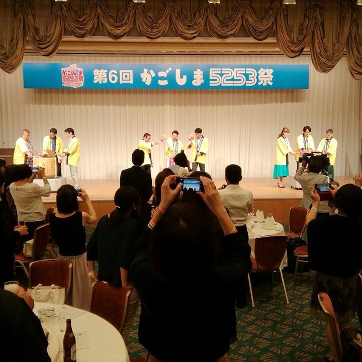 三反園知事、森市長、僕、かごしま5253祭実行委員のメンバーでイェーーイ!!!