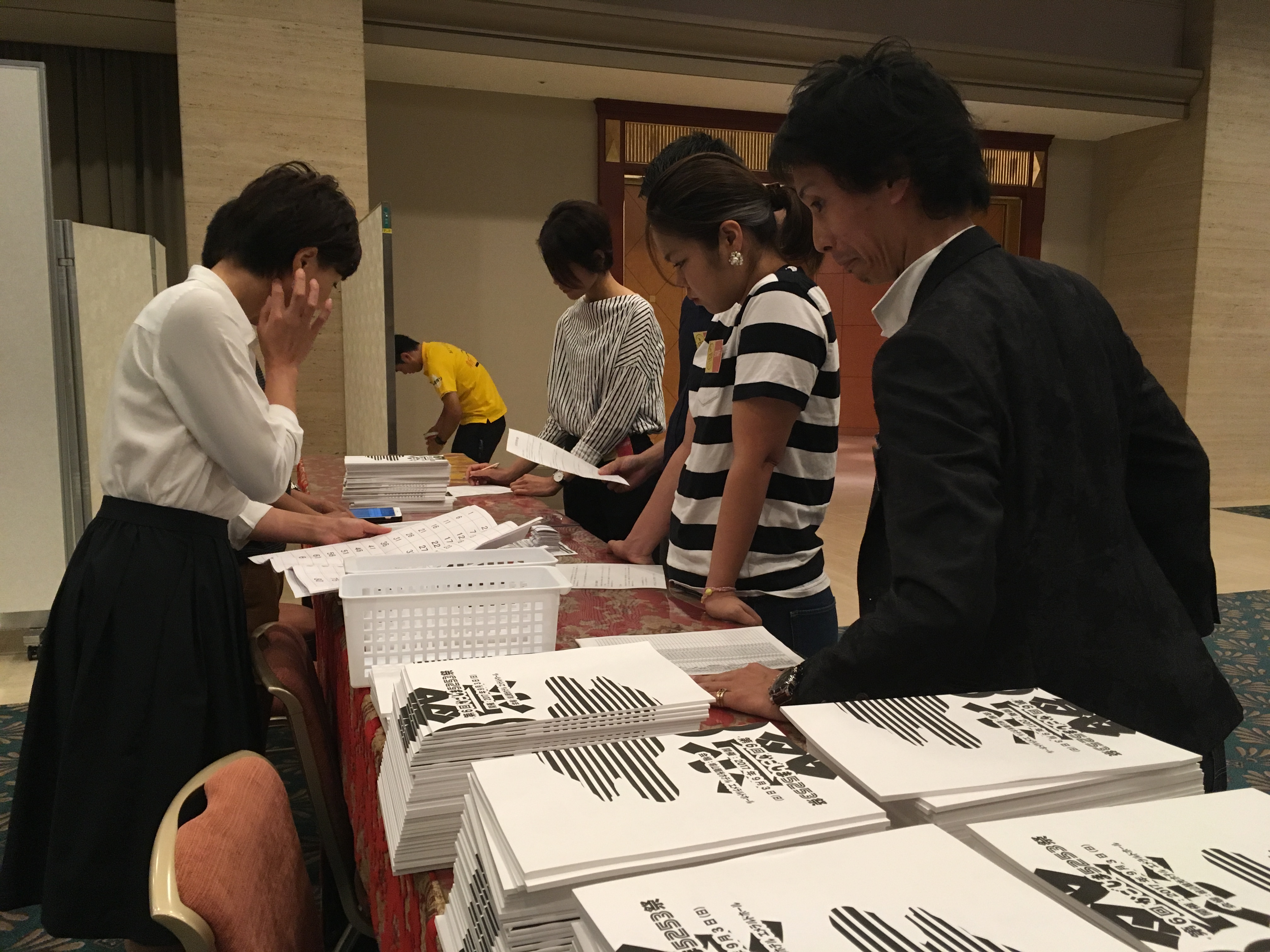 受付けではボランティアスタッフとフロアスタッフが入念に打ち合わせ。