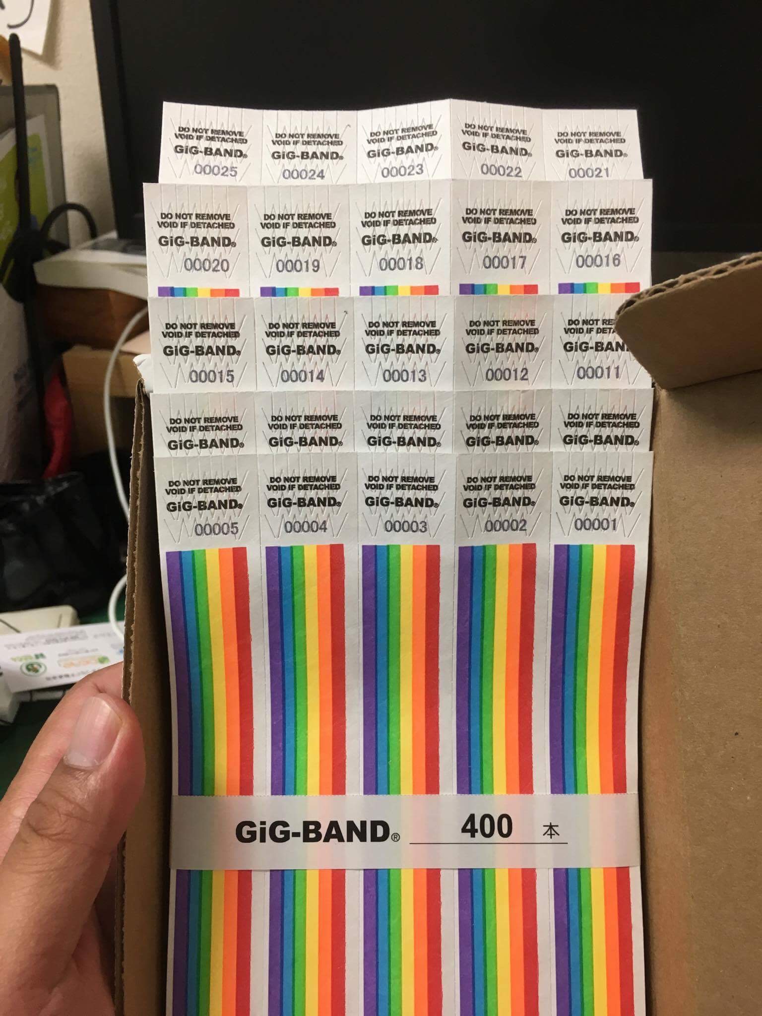 これは、抽選会で使うシリアル番号付のギグバンド。これで入退場を管理しました。